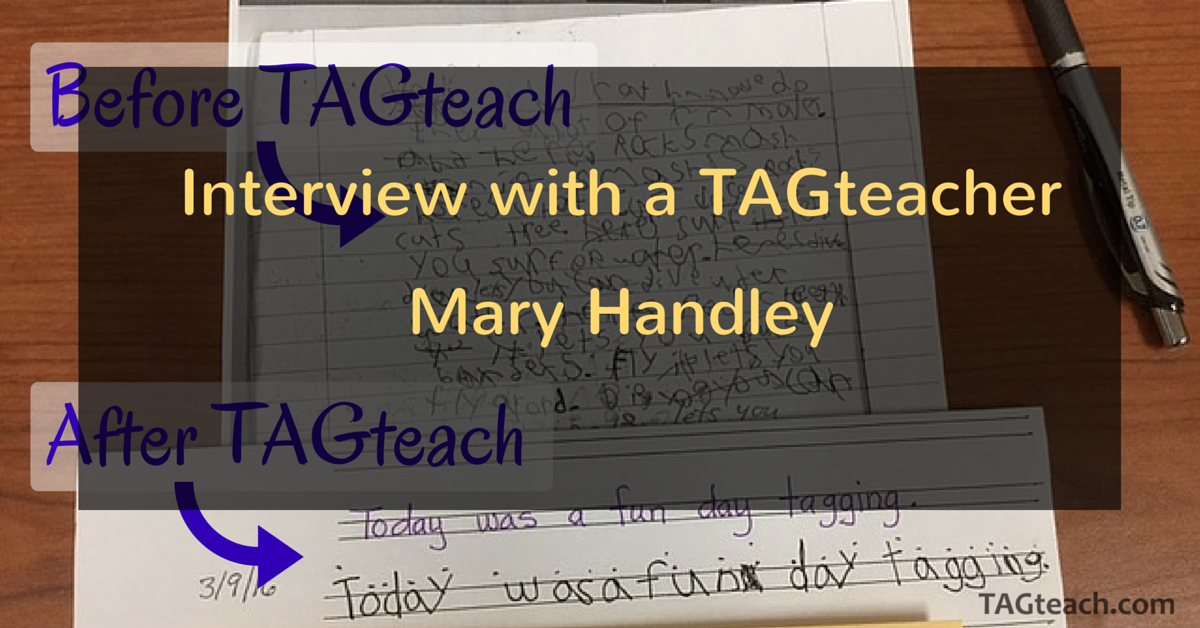 Check out the latest in our Interview with a TAGteacher series. This time we talked to Mary Handley, a school-based occupational therapist who is working with a 3rd grader to improve his handwriting. Noah’s handwriting skills were not functional and this was affecting his grades and his attitude at school. Mary explains with several video examples how she helped Noah to improve significantly in just four sessions using TAGteach applied with her usual method of teaching.